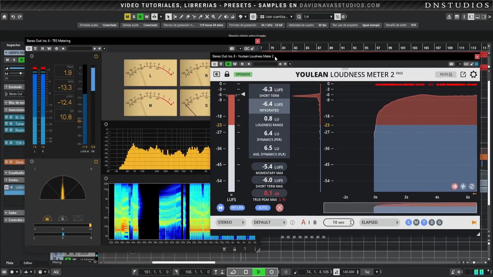 ✔ Youlean Loudness Meter 2 para control de LUFS y dinámica.
